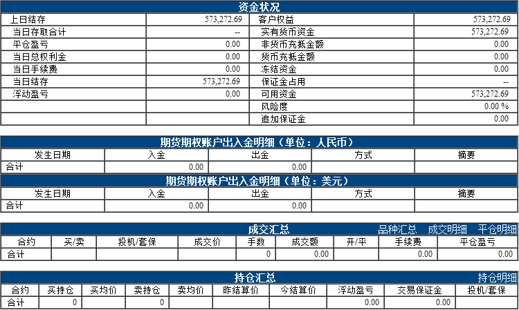 今日权益:573272.69元 昨日权益:573272.69元 以下表格为最近一个交易日的资金、成交、持仓情况,若需看之前的,请点击分页 阿超投资账户9月1日资金权益 以上数据来源于保证金监控中心 责任编辑:李婷 |
