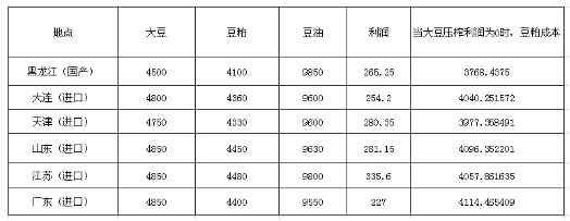 2、豆粕消费量保持旺盛。 我从压榨企业和豆粕贸易市场了解到的信息是,2012年上半年豆粕的消费量高于上一年,并且需求持续保持旺盛。一方面生猪存栏量一直较高,饲料需求旺盛,另一方面水产养殖的饲料需求和往年相比有所增长。 据中国国家农业部的数据,2012年第二季度,生猪整体供应量高于去年同期,季末存栏量达4.6亿头,同比上涨0.3%,能繁母猪存栏4930万头,同比上涨4.4%,生猪出栏量达1.7亿头,同比上涨7.2%;猪肉产量达1272万吨,同比上涨8.4%。(到了8月末,全国生猪存栏量再次攀升至4.66亿头左右,环比增加0.9%,能繁母猪存栏量为4959万头左右,环比增加0.4%。) 3、豆粕现货价格比期货高。 几个月以来,我从豆粕第一线市场了解到的现货价格一直比期货价格高,到了8月21日22日,价差进一步拉大,标43豆粕(含蛋白量大于等于43%、符合期货交割标准的豆粕)现货价格4500左右,而期货价格只有4100左右,现货比期货整整高了400元。 价差的拉大,一方面说明现货市场豆粕供应紧张程度有所提升,另一方面则说明空头主力在期货上压制价格,并且空头力量依然比较强。 4、国家抛储压制价格。进入8月,国家开始40吨、40吨的抛储大豆,这对大豆和豆粕的价格有所压制。温总理制定大豆收储、抛储政策还是相当好的,如果前几年没有保护价收储,大豆可能就没人种了,2012年的豆粕价格可能早就到6000了。 5、大豆压榨企业利润普遍不好。长期以来,受进口大豆成交较高、国家调控豆油价格等因素的制约,大豆压榨利润一直在盈亏线附近波动,即便有盈利也不多。黑龙江九三油脂2011年一年的销售额200亿,但净利润只有9000多万,利润率不到0.5%。全国的油脂企业2011年压榨利润很低,2012年截止到8月大豆压榨利润有所好转(国产大豆压榨好转程度好于进口大豆压榨),但利润依然偏低。