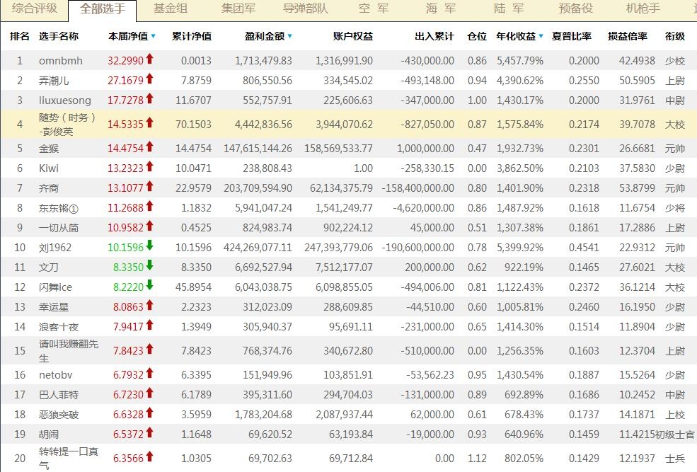 (更新日期:2016年11月9日)本届净值为第八届开赛以来选手的单位净值