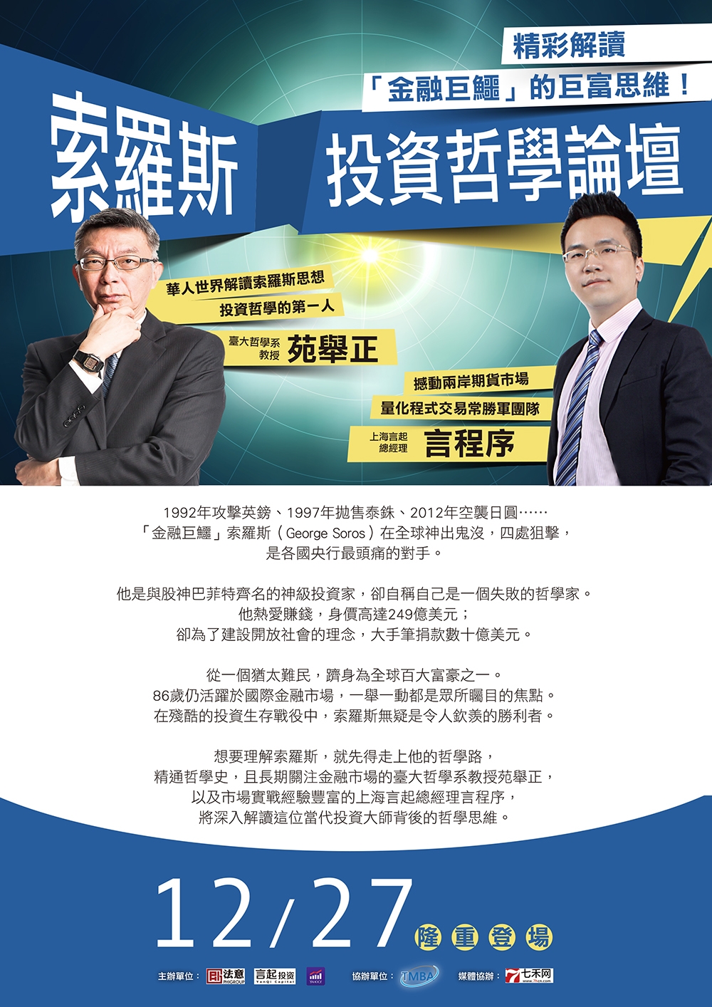 上海言起投资管理谘询有限公司总经理,曾率领言起投资团队在中国获得多次期货实盘交易大赛优胜。在第七届中国期货实盘赛基金经理大赛里担任评审、央视CCTV期货时间大赛中获奖,也是其中的策略提供者。多次受邀CCTV现场直播专访和《第一财经》专访。