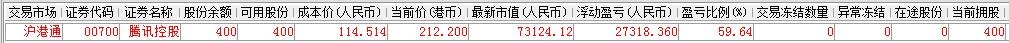 账户初始资金:100000.00元 5月18日入金:32000.00元 5月29日入金:9000.00元 6月23日入金:20000.00元 6月26日入金:10000.00元 6月29日入金:20000.00元 7月3日入金:20000.00元 7月8日入金:10000.00元 1月12日入金:90000.00元 1月22日入金:100000.00元 1月27日入金:100000.00元 3月21日出金:270000.00元 4月12日出金:35639.23元 10月10日出金:56913.08元 10月28日入金:60000.00元 3月7日出金:113800.00元 参考市值:73124.12元 账户资产:73138.42元 截至今日账户A股盈亏:-37123元 截至今日账户港股盈亏:27318.36元 账户净值:0.818