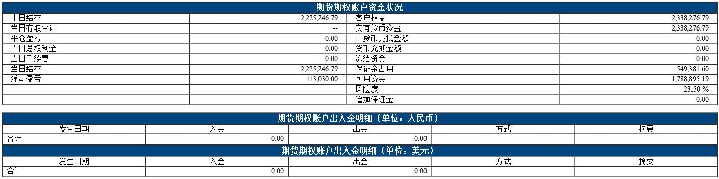 今日权益:2338276.79元 昨日权益:2352406.79元 以下表格为最近一个交易日的资金、成交、持仓情况,若需看之前的,请点击分页 阿超投资账户11月10日资金权益 以上数据来源于保证金监控中心 责任编辑:翁建平 |