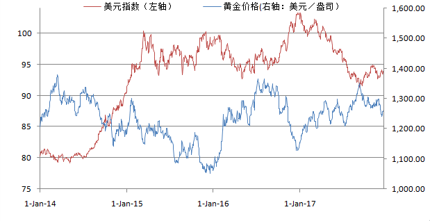 | 美元在美国税改通过后有望获得上行动能,加速金价下跌,但欧元区及新兴国家经济增长有赶超美国的势头,叠加投资者的谨慎和悲观情绪,美元上涨基础可能并不扎实,黄金可能先触底再反弹。 北京时间12月20日美国参议院通过税改法案当天美元指数并未上升,在投资者悲观疑虑的情绪下美元指数在当天晚上10点一路向下跌至本月以来的低点,金价则相应地升至本月以来的高点。这也部分说明美元可能难以获得扎实的上涨基础,由于金价大体上是由美元汇率涨跌决定(见下图),金价有望在短期筑底后再次回升。
