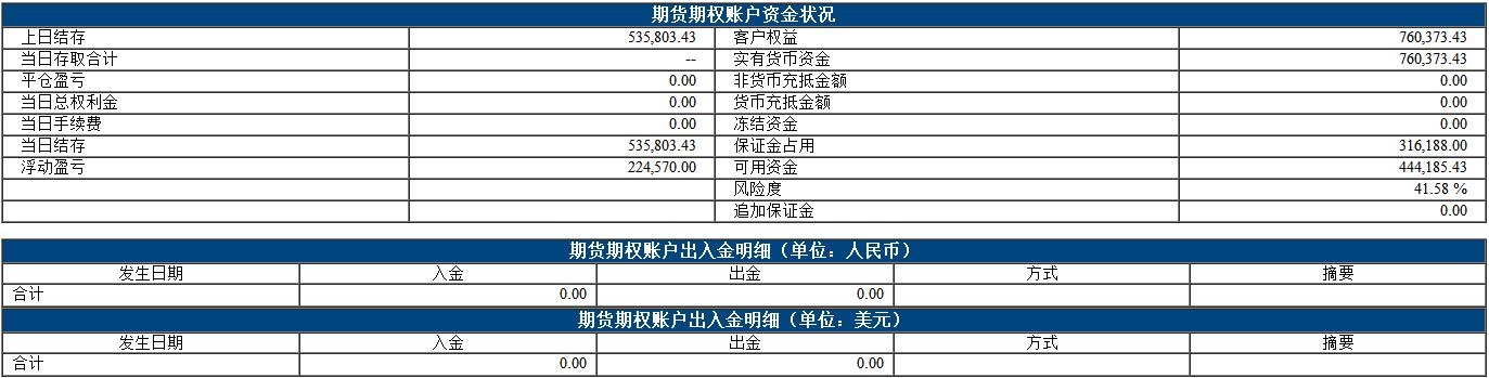 今日权益:760373.43元 昨日权益:760343.43元 以下表格为最近一个交易日的资金、成交、持仓情况,若需看之前的,请点击分页 阿超投资账户5月16日资金权益 以上数据来源于保证金监控中心 责任编辑:翁建平 |