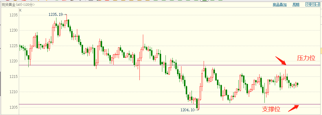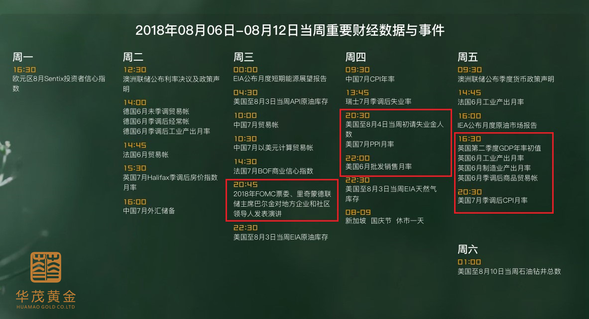 | 华茂黄金,上海黄金交易所综合类会员单位,专注黄金领域15年。一流的硬件设施,专线直连交易所;一流的服务,专业稳定的后台运维,品牌值得信赖,欢迎广大量化投资机构、套利机构、专业投资人来电咨询。VIP专线:400-008-0268 注:操作中所涉及的买卖点位,仅限交易参考,不承担因此产生的盈亏风险,投资有风险,入市需谨慎。 华茂论金 昨日公布的美国经济数据良莠不齐,美国当周初请失业金人数意外下降,表明美国就业市场仍旧强劲,但美国7月PPI数据不及预期。黄金日内小幅上涨后转跌,运行于1210支撑位上方,仍陷入盘整走势之中。 周五(8月10日)20:30市场将迎来本周最重要的一个经济数据——美国7月CPI,其中美国7月季调后CPI月率预期值为0.2%,前值为0.1%。市场聚焦CPI数据对美联储12月加息预期概率的影响及能否助长美元继续“称王”。 隔夜美元指数涨幅一度扩大至逾0.5%,刷新7月19日以来新高至95.677。芝加哥联储主席埃文斯的讲话被指功不可没,这位美联储坚定鸽派突然转鹰令市场意外,他认为可能需要将利率提高至“有些限制性”的水平。埃文斯还在芝加哥对记者们表示,2018年还可能进一步加息一到两次。他预计通胀预期也会跟着升上来,可持续失业率水平将维持在4.3%区域。由于特朗普政府的刺激政策,埃文斯对通胀前景更有信心。他认为,未来几年需要采取限制性的利率政策。他预计,到2020年底失业率将降至3.5%左右。 美国再次对俄罗斯实施制裁,美俄关系紧张对金价形成一定支撑。据NBC援引美国政府的消息人士报道,美国3个月后或就英国索尔兹伯里中毒事件对俄罗斯采取第二轮制裁;美媒称,要想避免制裁扩大,俄罗斯应保证以后不再使用化学武器。若美俄关系进一步紧张,或许能重新诱发黄金避险买需。 此外,美日谈判也在如火如荼地进行。昨日,美日两国在华盛顿举行首次内阁级别的双边贸易会谈。双方聚焦的焦点主要是对农业产品和汽车产业,安倍不太可能在谈判当中做出巨大的让步,但是双方可能会有一定的共识。