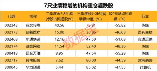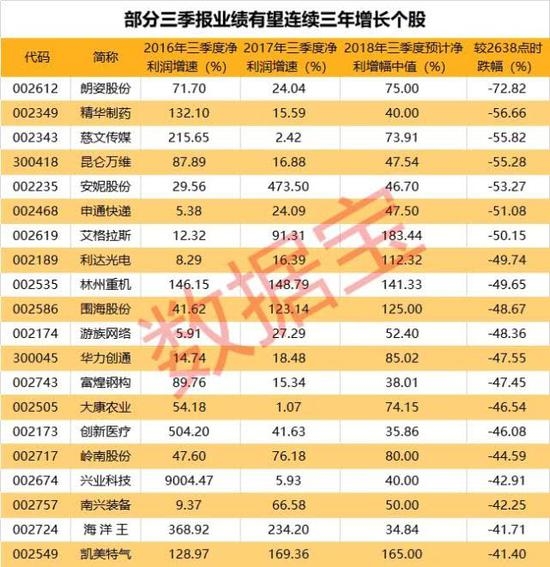 20只个股前三季业绩连续三年稳定增长,且股价较2638点相比跌去超40%,其中有7股二季度末被五大机构锁定5%以上的流通筹码。 119股三季报净利有望连续三年增长 距离三季度收官仅余17天,上市公司三季报有望逐步成为市场关注的焦点。数据宝统计显示,截至9月12日晚间,两市共有1175家公司三季度业绩预告亮相,其中,778家业绩预喜(包括业绩预增、续盈、扭亏、略增),占比超六成。进一步筛选发现,119家公司不仅今年三季度业绩预增,2016年、2017年三季度均盈利且净利润同比增长。 数据宝按上市公司三季度净利润增幅中值计算,上述119家业绩稳定增长的个股中,华东重机、建新股份2股预计净利润增幅中值在10倍以上,位居前两位。 华东重机预计前三季度实现净利润约3.81亿元至4.3亿元,增长1520%至1730%,主要原因是公司落实高端化、智能化战略,新增全资子公司广东润星科技有限公司的高端、智能装备制造业务。 建新股份预计前三季度实现净利润约4.63亿元至4.83亿元,增长1249.5%至1307.75%,公告显示,2018年上半年,公司产品间氨基苯酚及ODB-2销售价格保持稳定,销售收入大幅提高,毛利率增加,利润大幅增长。公司预计第三季度会继续保持,将对本期业绩产生较大影响。 行业分布显示,近三年业绩持续增长的公司主要分布于电子、化工、医药生物三大行业,均有10家以上公司入围。国防军工和休闲服务行业分布较少,均只有1家入围。 20股较2638点跌超40% 年内市场不断创出新低,沪指离5178点以来的低点2683点已近在咫尺。近三年来前三季度业绩稳定增长的个股中,截至9月12日收盘,有65股已经跌破了2638点时的股价。其中,朗姿股份、精华制药、慈文传媒、昆仑万维、安妮股份、申通快递、艾格拉斯7股跌幅超过50%,朗姿股份跌幅居首,期间股价累计下跌72.82%;13只股票跌幅介于40%至50%之间。 据数据宝统计,上述股价较2638点下跌超40%的20只股票中,有16只个股获社保、QFII、保险资金、公募基金、券商五大机构(以下简称机构)二季度集体增持,其中有7只个股二季度末获机构持有超5%以上的流通筹码。 具体来看,211家机构二季度末持有慈文传媒13296.59万股,占流通股比例为40.56%,位居首位,该股较2638点时的股价下跌55.82%;3家机构二季度末持有创新医疗3040.38万股,占流通股比例为15%,位居第二,该股较2638点时的股价下跌46.08%;134家机构二季度末持有申通快递4033.73万股,占流通股比例为12.16%,位居第三,该股较2638点时的股价下跌51.08%。 机构二季度末持有游族网络股份数量占流通股份比例也超过10%,该股较2638点时的股价下跌48.36%。此外,上述五大机构持有昆仑万维、岭南股份、华力创通的股份数占流通股的比例均超过5%。 从机构持股占总股本比例的变动来看,16股获机构二季度集体增持,其中,慈文传媒、游族网络、申通快递、朗姿股份4股持股比例较一季度末提升了一个百分点以上。 机构二季度末持有慈文传媒股份数量占总股的比例为28%,较一季度末提升了4.96个百分点,位居首位;游族网络二季度末机构持股比例为8.04%,较一季度末提升了4.25个百分点,位居第二;申通快递二季度末机构持股比例较一季度末提升2.07个百分点,位居第三。 6股获杠杆资金加仓超5% 据数据宝统计,截至9月12日,沪市两融余额5148.44亿元,较前一交易日减少2.12亿元;深市两融余额3345.98亿元,较前一交易日增加3.05亿元;两市两融余额合计8494.41亿元,较前一交易日增加0.93亿元。 从行业来看,申万所属的28个一级行业中,融资余额增加的行业有14个,增加金额最多的行业是医药生物,融资余额增加2.76亿元;其次是食品饮料、电气设备行业,融资余额分别增加2.33亿元、1.26亿元。 具体到个股来看,融资余额出现增长的标的股有390只,占比41.1%,其中,6股融资余额增幅超过5% 。融资余额增幅最大的是华东医药,该股最新融资余额3.47亿元,较前一交易日增幅达13.18%;股价表现上,该股当日下跌6.31%,表现弱于沪指;融资余额增幅较多的还有乐普医疗、恒邦股份,融资余额增幅分别为9.23%、9.03%。 融资余额增幅前20只个股中,市场表现来看,平均下跌3.02%,涨幅居前的有商赢环球、长园集团、内蒙一机,涨幅分别为4.26%、0.53%、0.07%。跌幅居前的有大华股份、海康威视、华东医药,跌幅分别为10.01%、8.94%、6.31%。 与杠杆资金大幅加仓股相比,有558股融资余额出现下降,其中,融资余额降幅超过5%的有6只。扬农化工融资余额降幅最大,最新融资余额2.3亿元,与前一个交易日相比,融资余额下降了10.47%;融资余额降幅较大的个股还有美克家居、中国软件等,融资余额分别下降了8.31%、5.94%。 责任编辑:七禾编辑 |