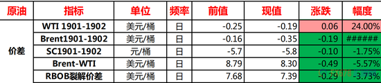 目前的主力合约是SC1901合约,日内增持1406手。今日SC1901成交量再刷新高,接近66万手,但是持仓变化相对较小,因为当前点位市场情绪出现了明显的分歧,相当一部分的空单选择了离场,并转而买进多单,但是依然有相当一部分押注油价继续回落的空单在当前点位进场。市场多空情绪夹杂,预计短时间依然维持低位震荡走势。 今日INE原油的加权平均价是412.2元/桶,较之前一交易日下跌12.9元。 此前因美国EIA原油库存连续10周增加,同时沙特表示将不会单独减产,加剧了市场对于OPEC减产的担忧,油价再次出现较大的跌幅。 不过随着有消息称俄罗斯石油公司、能源部认为有必要与OPEC联手减产,这使得原油收复了日内大部分的跌幅,同时美原油一度触及51.27美元。 随着俄罗斯表态将会进行减产,市场更加关注的是俄罗斯在减产问题上究竟能够做出多大的让步。有消息称俄罗斯不想大幅削减石油产量,可能与沙特讨论减产16.6万桶/日,而不是最初媒体报道的30万桶/日。 这使得美原油回吐了部分涨幅,目前回落至50.8美元附近。 期现价差 昨日提到,近期的期现价差为负值,意味着短时间市场的交投情绪不足以令行情选择方向,同时提到美原油因近期较大的跌幅,因此一旦油价走向发生改变,那么美原油领涨的可能性比较大。