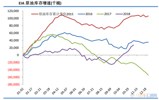 OECD5年平均库存下修 关于库存的问题,由于美国原油库存连续10周增加导致油价快速回落,因此库存的问题需要格外重视。 此前曾经提过,目前库存水平已经接近2016年油价大跌时的库存水平,目前从图上看出没有明显转势的迹象,因此不排除库存有上破2016年水平的可能。