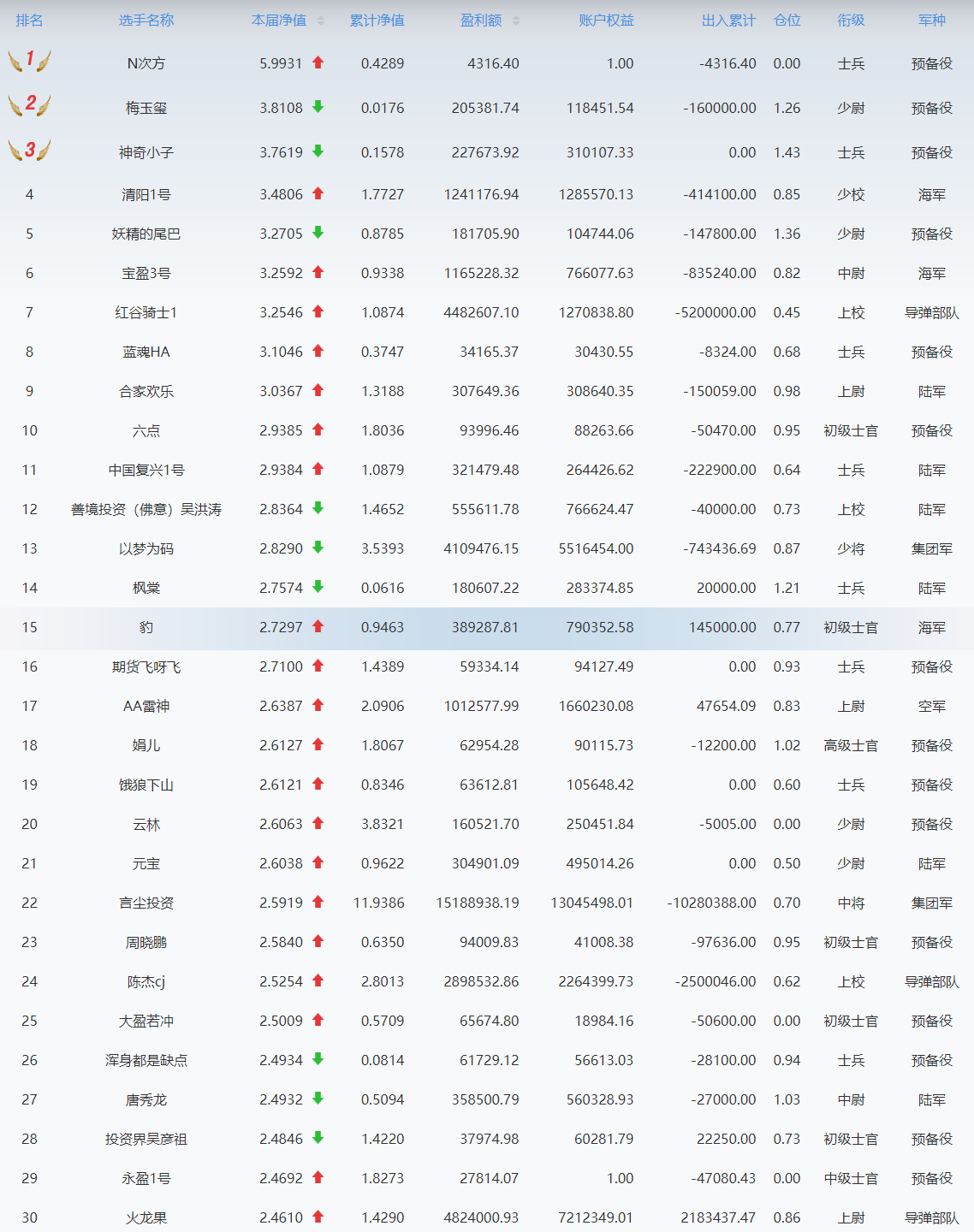 (更新日期:2019年3月18日)本届净值为第十一届开赛以来选手的单位净值