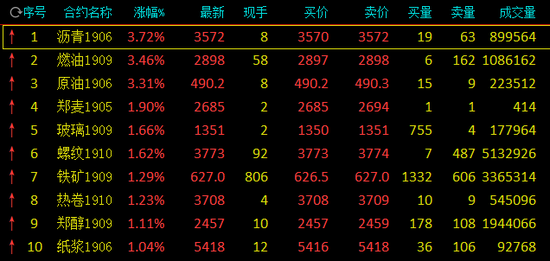| 4月22日,早盘有消息称,美国政府准备周一宣布终止对伊朗石油进口的制裁豁免,首次影响国际油价快速上涨,布伦特原油盘中突破74美元,国内能源类商品期货大幅上涨。 截至下午收盘,沥青涨3.72%、燃油涨3.46%、原油涨3.31%、玻璃涨1.66%、螺纹涨1.62%、铁矿涨1.29%、热卷涨1.23%。 跌幅方面,纤板跌2.10%、锰硅跌1.12%、鸡蛋跌0.77%、大豆跌0.60%、沪镍跌0.45%。