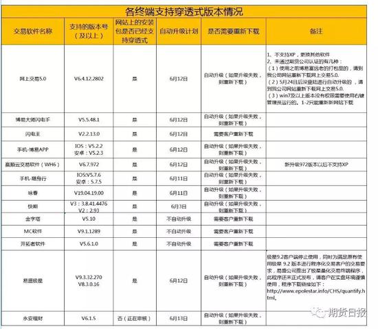 永安期货交易软件支持穿透式版本情况 期货日报记者注意到国投安信期货通知投资者需要更新的各个软件系统如下: