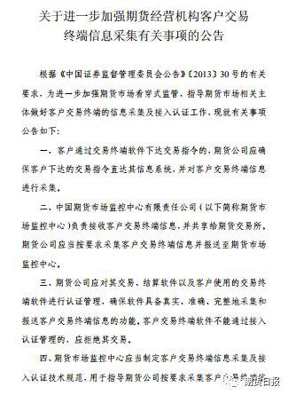 原来由中国证券监督管理委员会(下称:中国证监会)实施的中国期货市场“看穿式监管”政策北京时间今晚21:00将正式实施!