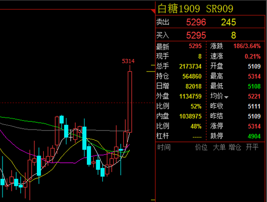 | 午后商品期货涨跌幅均扩大,PTA跌逾6%,铁矿石跌近6%,白糖涨逾3%,盘中一度涨停,创逾两个月新高;黑色系跌幅扩大,螺纹、热卷跌逾1%;农产品方面,软商品齐涨,鸡蛋涨逾1%。 截止下午收盘,白糖涨3.64%,燃油涨2.20%,鸡蛋涨1.69%,苹果(9297, 101.00, 1.10%)涨1.10%;跌幅方面,PTA跌6.39%,铁矿石跌5.85%,沪锌跌1.32%,螺纹跌1.21%,热卷跌1.00%。