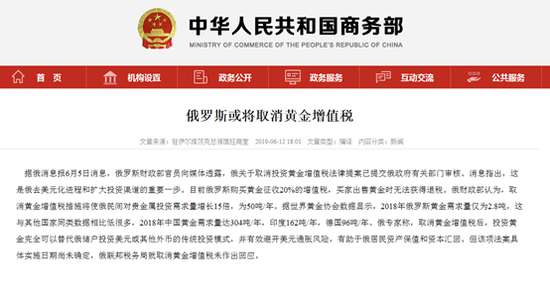 商务部网站 6月5日消息,俄罗斯财政部官员向媒体透露,俄关于取消投资黄金增值税法律提案已提交俄政府有关部门审核。消息指出,这是俄去美元化进程和扩大投资渠道的重要一步。目前俄罗斯购买黄金征收20%的增值税,买家出售黄金时无法获得退税。 据世界黄金协会数据显示,2018年俄罗斯黄金需求量仅为2.8吨,这与其他国家同类数据相比低很多,2018年中国黄金需求量达304吨/年,印度162吨/年,德国96吨/年。 俄专家称,取消黄金增值税后,投资黄金完全可以替代俄储户投资美元或其他外币的传统投资模式,并有效避开美元通胀风险,有助于俄居民资产保值和资本汇回。但该项法案具体实施日期尚未确定,俄联邦税务局就取消黄金增值税未作出回应。