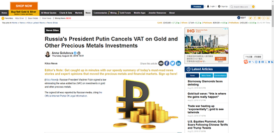 而据Kitco News8月22日消息,俄罗斯总统普京已经签署了取消黄金和其他贵金属购买增值税的法律。