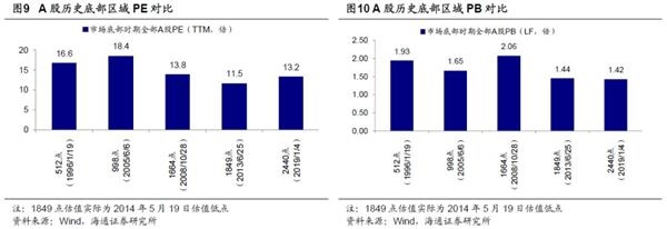 2、远景:牛市第二波上涨徐徐展开 上证综指2440点是第六轮牛市的起点。我们在《穿越黑暗迎黎明——2019年A股投资策略-20181209》、《现在类似2005年-20190217》、《再论19年类似05、12年:牛市蓄势-20190319》、《蓄势待发——2019年中期A股投资策略-20190705》等多篇报告中分析过,1990年以来A股已经经历了五轮“牛市-熊市-震荡市”周期不断交替的过程,19年1月4日上证综指的2440点以来市场进入第六轮牛市:一是从牛熊转换的时空来看,第五轮熊市从15/6/12高点5178点到19/1/4低点2440点最大跌幅53%,与前四轮50-70%最大跌幅相当,持续43个月,与前四轮普遍35-50个月持续时间相当,第五轮熊市下跌的时间和空间已充分;二是从估值来看,过去五轮熊市中市场底部时期全部A股PE(TTM,整体法,下同)为11.5-18.4倍,PB(LF,整体法,下同)为1.48-2.06倍,前期低点上证综指2440点(2019/1/4)分别为13.2倍、1.42倍,已经处于底部区域下轨附近,全部A股剔除银行后前四次底部PE为16.0-19.0倍、PB为1.63-2.13倍,上证综指2449点时为18.0倍、1.81倍,也处于底部区间;三是从基本面看,历史上5个领先指标(社融存量同比/贷款余额同比、PMI/PMI新订单、基建投资累计同比、商品房销售面积累计同比、汽车销量累计同比)中3个或以上企稳后市场会反转,而本轮行情的背景是社融存量同比于18年12月见底,基建投资累计同比于18年9月见底,PMI于19年2月见底,即19/01前后五个领先指标中3个指标也已经企稳。我们认为上证综指19年2440点类似05年的998点,均处于盈利探底末期,政策拐点出现、流动性改善,熊牛转换。此外,我们根据盈利和估值的变好,进一步将牛市划分为三个阶段:第一是孕育期,盈利回落,流动性改善推动估值修复,市场进二退一;第二是爆发期,估值盈利双升,戴维斯双击,市场的主升浪;第三是泡沫期,盈利增速平稳,资金大量流入,估值走向市梦率,市场冲顶,详见《牛市有三个阶段-20190303》。 上证综指2733点附近是牛市第二波上涨起点。1月4日上证综指2440点是牛市反转点,2440点到4月8日3288点是牛市第一波上涨,3288点至8月初的2733点是牛市第一阶段进二后的退一,对应波浪理论,上证综指2440-3288点是牛市1浪上涨,3288-2733点是牛市2浪回调。我们在前期报告《布局良机-20190811》中指出,参考05年下半年、08年四季度等,牛市2浪回调通常回吐牛市1浪涨幅的0.6-0.7,这次从19/01上证综指最低2440点最大上涨848点至4月初的3288点(涨幅35%),之后回撤555点至8月初2733点(跌幅-17%),回吐前期上涨幅度的0.65,回吐已经充分。上证综指2733点附近较大概率是牛市二波上涨的起点,即对应波浪理论中的3浪(即主升浪)。借鉴05-07年、08-10年、12-15年三轮牛市,牛市第二波上涨需要基本面、政策面的共振,详见《牛市第二波上涨需要啥条件?-20190714》。但是基本面和政策面的确认是个逐步的过程,因此历史上市场在主升浪初期仍会折返跑,反复盘整。未来需要密切跟踪经济金融数据及国内外政策事件的变化,基本面上我们从库存周期和政策时效角度预判全部A股归母净利同比增速三季度见底,具体的确认要跟踪月度数据,如10-11月的PMI、工业增加值、库存数据等,详见《如何预测跟踪盈利趋势?-20190919》。政策面上,货币政策方面,9月17日央行开展中期借贷便利(MLF),利率3.30%较前值持平,部分投资者降息预期落空。随着9月欧美央行降息落地,我国利率向下空间将打开,不排除后续MLF利率下调,后续三个观测时间点是11 月5日、12月 6日、12 月 14日。财政政策方面,9月初国务院常务会议提出根据地方重大项目建设需要,按规定提前下达明年专项债部分新增额度,确保明年初即可使用见效。从时点看专项债大概率提前到四季度,后续需要跟踪具体额度及落地。从改革看,9月9日中央深改委第十次会议召开,主题是落实党的十八届三中全会以来中央确定的各项改革任务,提出前期重点是夯基垒台、立柱架梁,中期重点在全面推进、积厚成势,现在要把着力点放到加强系统集成、协同高效上来。未来跟踪十九届四中全会后,完善国家治理、推进改革的相关措施,这是提振市场风险偏好的重要因素。综上我们预计11月到年底,有望看到基本面企稳逐步确认,政策面进一步发力,牛市第二波主升浪将加速向上。