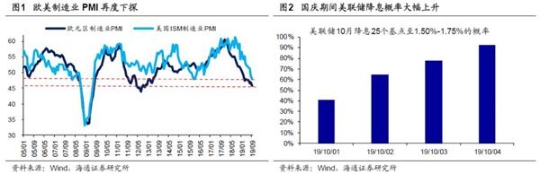 | 1、阶段性折返跑未完成 美欧股市下跌是A股折返跑的外部环境。国庆假期内外围股市出现了不同程度的下跌,10月1日至4日标普500指数下跌0.3%,富时100指数下跌3.7%,德国DAX指数下跌3.0%,恒生指数下跌0.5%。股市下跌的原因源自经济下行压力加大以及国际关系再度紧张。①美国方面:10月1日公布的9月ISM制造业PMI只有47.8%,创10年来新低。10月2日公布的ADP新增就业人数9月为13.5万人,低于预期的14万人,且8月数据从19.5万大幅下修至15.7万。因此10月1-2日标普500指数大幅下跌约3%。10月3日美国公布的9月ISM非制造业PMI降至52.6%,创3年来新低。10月4日公布的非农新增就业人口为13.6万人,低于预期的14.5万人。因经济数据不佳,市场对美联储降息的预期快速升温,市场预计美联储在10月份降息25个基点的概率从41%上升到92.5%,标普500指数在10月3、4两个交易日因此反弹2.2%。②欧洲方面:10月1日公布的9月欧元区制造业PMI进一步下降至45.7%,创7年新低,市场对经济衰退的担忧进一步加大。10月2日WTO裁决欧盟及其部分成员国违规补贴空客公司,美国将有权对每年约75亿美元的欧盟输美商品和服务采取加征关税等措施。当日美国表示从10月18日开始将对欧盟大型民用飞机征收10%关税,对农产品、工业品征收25%关税。此外,英国首相约翰逊于10月2日表示,英国正就脱欧提出妥协方案,但同时英国也准备好了无协定脱欧,国际关系进一步面临不确定性。综合来看,由于欧洲负面因素相比美国更多,股市跌幅也更大。从估值和盈利的匹配度看,美股当前性价比较低,标普500截至10月4日的PE约为21倍,但是19Q2的EPS(TTM)同比增速只有2%。我们在前期报告《美股如牛转熊对A股有何影响?-20181014》中分析过,美股下跌短期会拖累A股,国际资金风险偏好下降时会影响资金流入A股,中长期A股证券化率低最终会吸引资金流入。2018/02/05-02/09当周美国非农数据引发加息担忧,美股连续大跌,标普500指数一周下跌5%,当周从A股流出的北上资金合计高达113亿,导致上证综指累计下跌9%,又如2018/10/08-10/12当周标普500大跌5%,同期北上资金净流出170亿,上证综指大跌8%。本次国庆假期美欧股市再度下跌将加剧A股折返跑。 上证综指2733点以来的折返跑未完成。我们在前期报告《加速前的热身-20190915》、《热身阶段的折返跑-20190922》等中提出上证综指2733点附近可能是牛市第二波上涨起点,牛市第二波上涨需要基本面、政策面共振,初期在确认基本面或政策面变好前市场会有反复,如同跑步加速前在起点附近折返跑做热身,市场需反复震荡盘整后才会加速上涨,如05/12-06/01、09/01、14/03-14/06。①05-07年牛市中第二波上涨从16/01开始。在这之前上证综指先在05/10/28日触及低点1067点,随后到05年底指数一直在1100点上下反复盘整,背后原因是基本面和政策面均在06/01前后得到确认,工业增加值累计同比从06/01的12.6%上升至2月的16.2%,随后升至07/03的18.3%,06年初政策加码,贷款数据显示政策效果进一步显现,贷款余额同比从05/12的13.0%升至06年1、2月的13.8%、14.1%,随后升至07/03的16.3%。②08-10年牛市中第二波上涨从09/01开始。前期上证综指先从08/12/9的2100点回落至08/12/31低点1814点,随后到1月底,指数一直在1800-2000点盘整,之后经济金融数据逐步公布,工业增加值累计同比从09/01的-2.9%触底回升至2月的3.8%,显示基本面开始好转,贷款余额同比从08/06的低点14.1%先升至08/12的18.8%,再进一步升至09/01的21.3%,显示四万亿政策效果显现,因此市场开始放量上涨。③12-15年牛市中,以上证综指刻画第二波上涨从14/03开始。14/3-14/6月期间上证综指一直在2000点上下盘整,与前两轮牛市盘整完进入加速上涨阶段的背景不同的是,这一次基本面仍在下行,市场上涨源自政策面,先是14年7月改革预期大幅提升,上证综指突破2200点,随后11月央行下调金融机构一年期贷款基准利率0.4个百分点至5.6%;下调一年期存款基准利率0.25个百分点至2.75%,货币政策转向宽松刺激上证综指放量向上突破。目前上证综指2733点以来的折返跑热身还没完成,海内外股市8月出现低点后上涨均再次回撤,标普500指数10月3日最低点2855点距离8月5日的2822点非常近(4日收盘回到2952点),富时100指数10月3日最低点7004点已跌穿8月15日的低点7020点(4日收盘回到7155点),德国DAX指数10月4日最低点11878点距离8月15日的低点11266点很近(4日收盘回到12012点),恒生指数10月4日最低点25612点距离8月15日的低点24899点也很近(4日收盘回到25821点)。