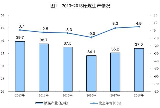 | 2013年(第三次全国经济普查)以来,我国能源供需形势相对宽松,煤炭行业化解过剩产能初见成效,油气勘探开发力度进一步加大,清洁能源持续高速发展。 一、原煤生产基本平稳,产业集中度持续提升 2018年,原煤产量37.0亿吨,自2016年“去产能”政策实施以来优质产能加速释放,原煤产量连续两年回升,基本回升至2015年水平,比2013年下降7.0%;日均产量1013万吨,比2013年减少76万吨。