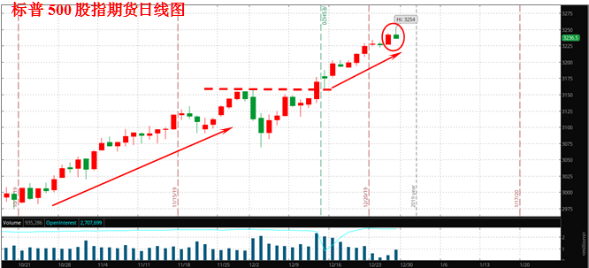 | 彷佛赶进度似的,本周美国股市持续保持创新高格局,丝毫没有受到圣诞假期的因素,整体涨势整齐。從12/12媒体报导贸易协议露出曙光开始,多头就加足了马力,开启了新一波涨势,惯性也从前一波的温涨一举改成斜率较大的连涨,涨多修正从拉回变成了强势的横盘整理,11个交易日不曾停歇。 在不确定因素一一排除之后,市场氛围乐观预期多头可望持续攻高至年末,为2019完美收官。搭配财报评估的角度来看,多方是有足够的动机如此操作一番,天时、地利、人和的诸项条件一一到位,成就了大概率的年末拉升行情。 与此同时,圣诞假期也成就了行情低量稳定运行的环境,休假反而降低了卖压涌现的机会,涨多结构的自我强化效果,让更多的买盘蠢蠢欲动,行情也就更加看回不回。 对于顺势操作者而言,这种一波到底的急奔走势最是扩大战果的大舞台,浮盈加仓让获利立于不败之地。长红之后的微幅修正也让人性考验大幅降低,经济学上有所謂的「金发女孩」比喻锦上添花、如虎添翼的高成长、低通胀环境,一波到底、近乎零修正的急攻走势也让顺势操作有了类似的效果,但却也容易降低了持仓的风险意识。 回顾2018一月走势,也是呈现了与此刻相比不遑多让的创新高急奔行情。在没有任何预警的情况下,涨多迎来了二月初的急杀,短短数个交易日中,道琼斯出现两日的大跌千点行情,单日动辄振幅高达1800点,让不少多头措手不及。毕竟涨多就是最大的利空,如何察觉可能变盘的蛛丝马迹,成了急攻之后能否保持战果的重要关键。 在K线战法中,母子组合本是原趋势走缓的现象,创新高的流星则说明了高档追价力道的不足。乐观一点看,可以是涨多的短暂修正,与十字线、小星线无异。但若同时出现且后续转为震荡甚至走弱,则意味著多头惯性改变的可能。