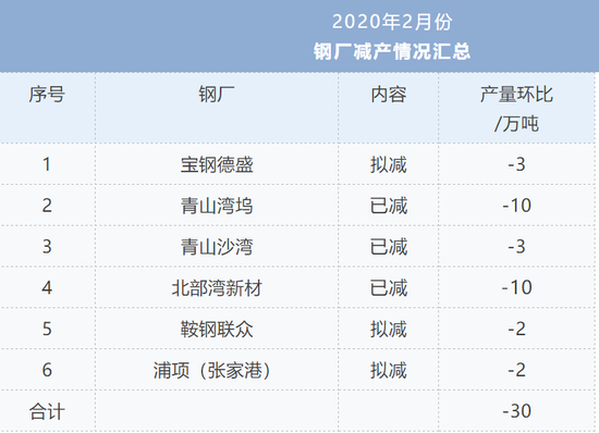 | (2月11日讯)由浦项(张家港)倡导:拟“太钢不锈主导、联合北部湾新材料、酒钢、宝钢德盛、鞍钢联众,联合青山、江苏德龙,从3月份开始进行大规模减产”。 针对疫情爆发,不锈钢行业正常生产、销售均受到极大影响,预计3月份不锈钢企业将会面临订单不足的局面,建议钢厂进入规模减产,共同渡过困难局面。 共度时艰 你我需要携手! 虽然不锈钢行业暂未完全复工,我们却已经感到了深深的“寒冷”。 但我们也应该看到一丝曙光,不锈钢全行业已经都在“各自”悄然应对。如同“散装江苏”一样,我们“散装不锈钢队伍”依旧在行动! 1月份钢厂已经主动收缩产量,根据我们统计1月份不锈钢产量环比下降30万吨。 那么我们现在了解到的情况看,继1月份之后,2月份最新加入的减产队伍又扩张了!