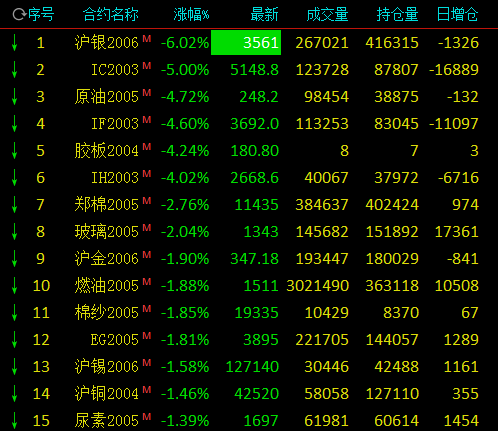| 3月16日,国内期市收盘多数下跌,沪银跌停,跌幅达6.02%;农产品多数上涨,苹果涨超3%,豆一涨近3%,豆二、鸡蛋涨逾1%;能化品全线下跌,原油跌逾4%,玻璃跌逾2%,燃油跌逾1%;基本金属涨跌不一,沪镍涨逾1%,沪锡、沪铜跌逾1%。
