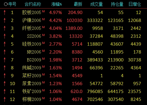 | 4月20日,国内期市收盘涨跌互现,有色飘红,沪镍涨逾4%,不锈钢涨近4%,硅铁涨近3%;能化板块分化,原油跌逾3%,塑料跌逾2%,20号胶涨逾2%,乙二醇、纯碱涨近2%;农产品多数下跌,鸡蛋跌逾3%,豆二跌近2%;黑色系中,铁矿石涨逾1%,螺纹跌逾1%。