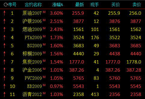 | 5月15日,国内期市开盘,能化板块飘红,原油涨近4%,燃油涨逾2%;贵金属走高,沪银涨逾2%,沪金涨逾1%;豆一跌逾2%。