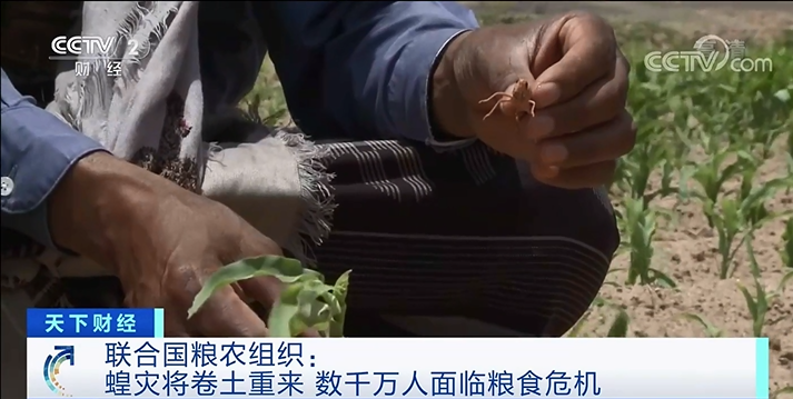 | 今年年初开始,东非、西非、西亚和南亚地区的将近20个国家遭遇严重蝗灾,大片农田和作物被毁坏。 当地时间5月11日,联合国粮农组织发布报告称,在东非和也门,由于气候条件仍然利于蝗虫繁殖,蝗灾可能会在农作物收获的六月卷土重来,粮食危机的风险并未消除。 根据联合国粮农组织发布的最新报告:今年以来,包括吉布提、埃塞俄比亚、索马里、也门等十个国家受到蝗灾影响,已经有365000多公顷土地经过了防灾治理。 然而,由于前一拨蝗虫已经完成繁殖,大批幼虫将在今年六月,也就是东非地区农民准备收割作物的关键时期发育为成虫。