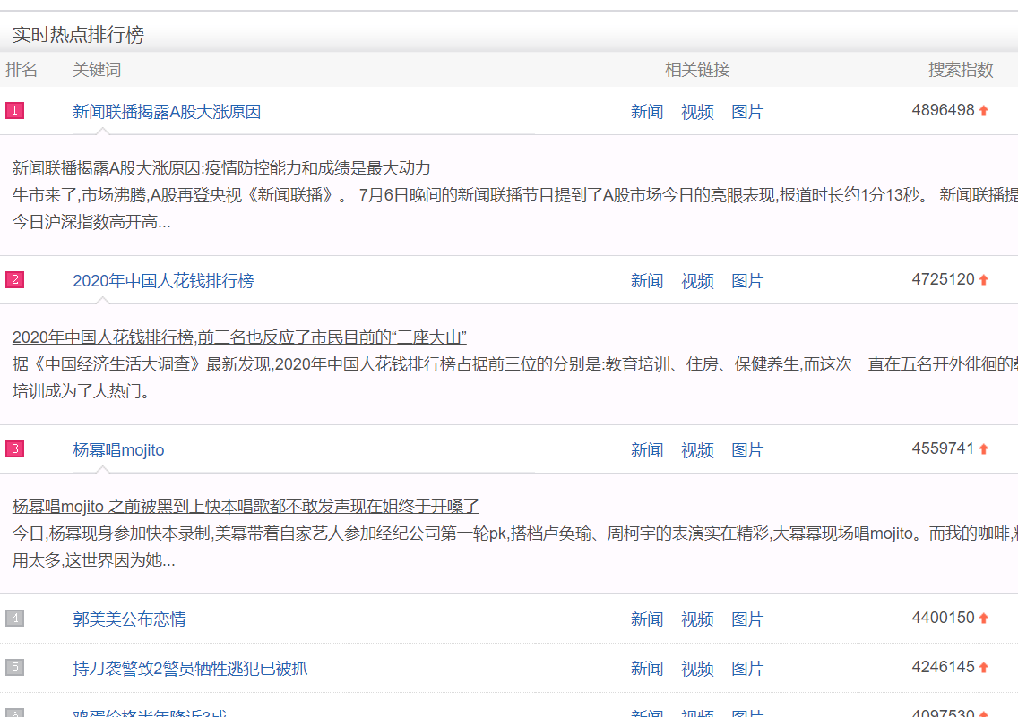 此外,百度指数显示,近7日“开户”的搜索指数同比上升了28%,环比上升43%。同时,新闻联播播报A股大涨同样上了百度热搜,且排名第一。