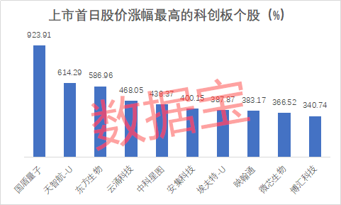 上市首日平均上涨163%,交易情绪平稳 虽然科创板公司上市前五个交易日没有涨跌幅限制,但市场交易情绪并未因此出现非理性波动。数据宝统计,今日之前上市的133家科创板公司上市首日股价平均涨幅为162.97%,小于同期其他A股公司开板前的平均涨幅197%,相比于其他A股板块,科创板炒新情绪更加“淡定”。 个股来看,科创板新股上市首日的表现呈现出较大差异。国盾量子上市首日最高涨幅一度超过10倍,久日新材、祥生医疗上市首日涨幅不足10%,建龙微纳甚至出现上市首日破发的情形。