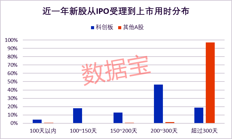 科创板审核提速60%,多元上市标准展现包容性 注册制下,企业IPO审核显著提速。证券时报·数据宝统计,已登陆科创板的140家公司从IPO受理到上市平均用时227天,较同期非科创板公司的上市平均用时592天提速了61.7%。6家公司上市用时不足百天,中芯国际更是创下了18天过会、从受理到上市仅用45天的A股记录。 科创板的新股快节奏审核极大缓解了A股长久以来新股发行的堰塞湖效应,节约了新股发行的时间成本,提高了企业融资效率,保障了市场的新股供应。