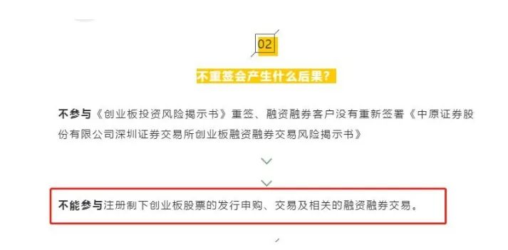 近期新股表现疯狂,尤其是生物医药新股。7月27日,科创板上市的眼科医疗新股爱博医疗暴涨616.84%,中一签赚超10万;甘李药业一签赚超20万元。 363只新股申请创业板注册制IPO 8月3日晚间,证监会网站显示,证监会同意6家企业创业板IPO注册,分别为海晨物流、捷强动力、蒙泰股份、维康药业、金春股份、天阳科技。至此,创业板注册制已有18家公司获同意IPO注册。 深交所官网显示,创业板注册制下,目前申请IPO企业数量已经达到363家,其中29家提交注册(含18家获同意生效),其中9家已经启动发行;受理175家、问询148家、上市委会议5家、中止6家。 有投行人士指出,创业板注册制下首批上市公司,预计将在目前29家提交注册(含注册生效)的公司中。 不这么操作,将无法打新创业板注册制新股 1.6亿股民需要注意,创业板注册制下的交易权限需要重签,否则将影响注册制下创业板的打新与交易。也就是说,不重签将没法参与首批6只创业板注册制新股打新。现在券商的APP上即可完成重签。 由于注册制下创业板交易涨跌幅等有所变化,对于已经开通创业板的投资者,需要重签风险揭示书,而未开通的投资者开通门槛是10万元资产以及2年投资经验。为参与创业板交易,投资者需尽快重签或开通权限。 6月12日创业板改革并试点注册制的主要制度规则的发布。按照深交所管理实施办法要求,存量投资者需重新签署《创业板投资风险揭示书》后才能参与改革后的创业板交易。如果不重签,将不能参与注册制下创业板打新、交易和融资融券。