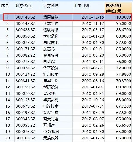 今日8月4日,与锋尚文化一起发行的还有美畅股份300861,同样也是注册制下的创业板新股。两只新股的发行价分别为138.02元、43.76元,果然在更加市场化的定价机制下,发行价明显不同,发行市盈率分别为41.2倍和46.09倍。 值得注意的是,锋尚文化作为创业板注册制第一股,138.02元的发行价,也创出了创业板2009年开板以来的最高发行价。此前最高发行价为2010年12月发行的汤臣倍健,发行价为110元。