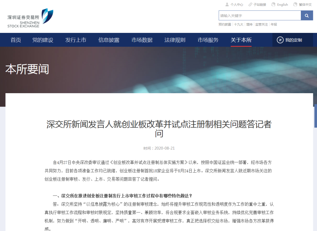 | 经过近4个月的努力,创业板改革并试点注册制各项工作准备已就绪。8月24日,创业板注册制首批首发企业将上市交易。今日,证监会有关负责人就近期市场关心问题,深交所就创业板注册制审核、发行、上市、交易等问题作出了回应。