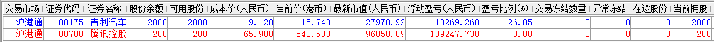 | 账户初始资金:100000.00元 2015年5月18日入金:32000.00元 2015年5月29日入金:9000.00元 2015年6月23日入金:20000.00元 2015年6月26日入金:10000.00元 2015年6月29日入金:20000.00元 2015年7月3日入金:20000.00元 2015年7月8日入金:10000.00元 2016年1月12日入金:90000.00元 2016年1月22日入金:100000.00元 2016年1月27日入金:100000.00元 2016年3月21日出金:270000.00元 2016年4月12日出金:35639.23元 2016年10月10日出金:56913.08元 2016年10月28日入金:60000.00元 2017年3月7日出金:113800.00元 参考市值:136009.02元 账户资产:138277.41元 截至今日账户A股盈亏:-43595.71元 截至今日账户港股盈亏:98978.47元 账户净值:1.548