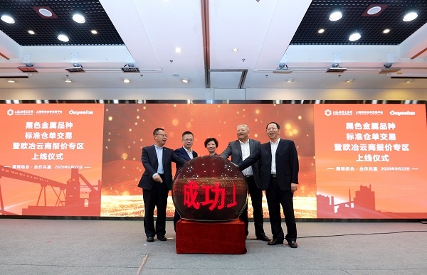 | 2020年9月22日上午9时,黑色金属品种标准仓单交易和欧冶云商报价专区在上期标准仓单交易平台成功上线。 上海市商务委员会副主任刘敏、上海市地方金融监督管理局(金融工作局)总经济师陶昌盛、上期所理事长姜岩、中国宝武集团欧冶云商董事长赵昌旭、中国(上海)自由贸易试验区管理委员会、中国(上海)自由贸易试验区临港新片区管委会等相关部门嘉宾出席上线仪式。上期所总经理王凤海主持上线仪式。