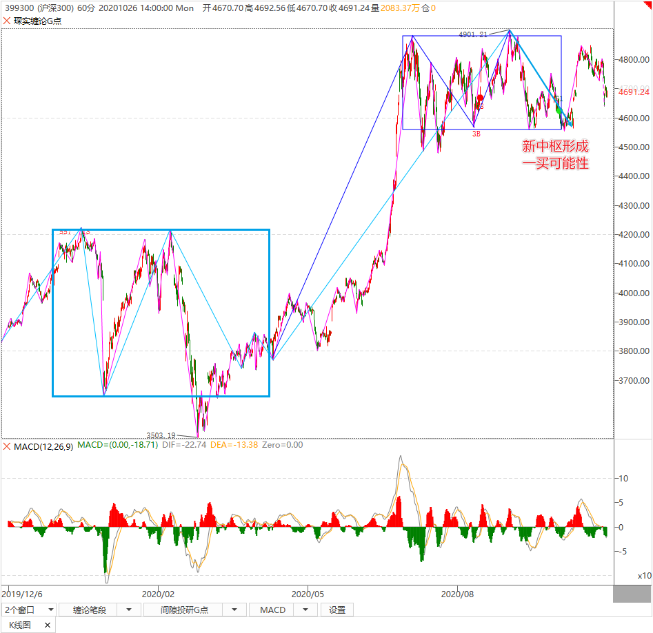 2,关注60分钟(长线)新中枢形成一买的可能性,从15分钟递归,最快确认在本周。
