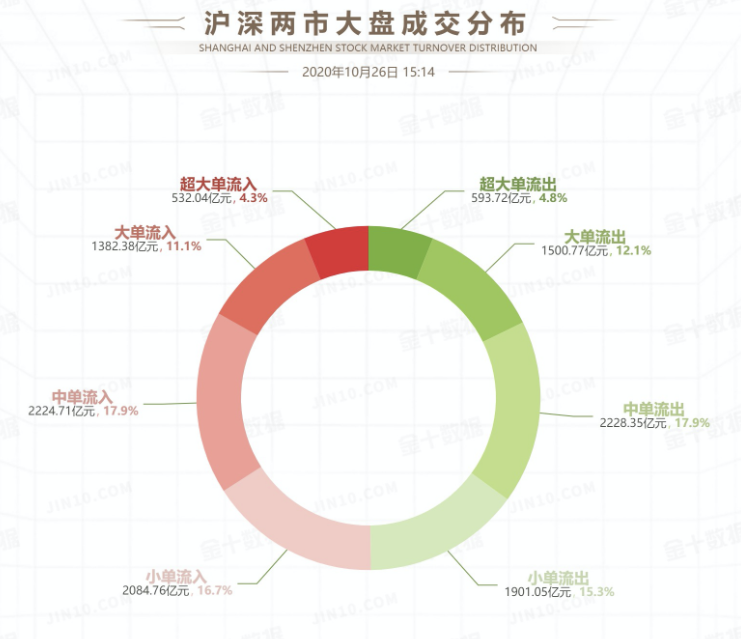 两市主力资金净流出180.07亿元,占比2.84%;大单资金净流出118.39亿元,占比1.87%;小单资金净流入183.72亿元,占比2.9%。