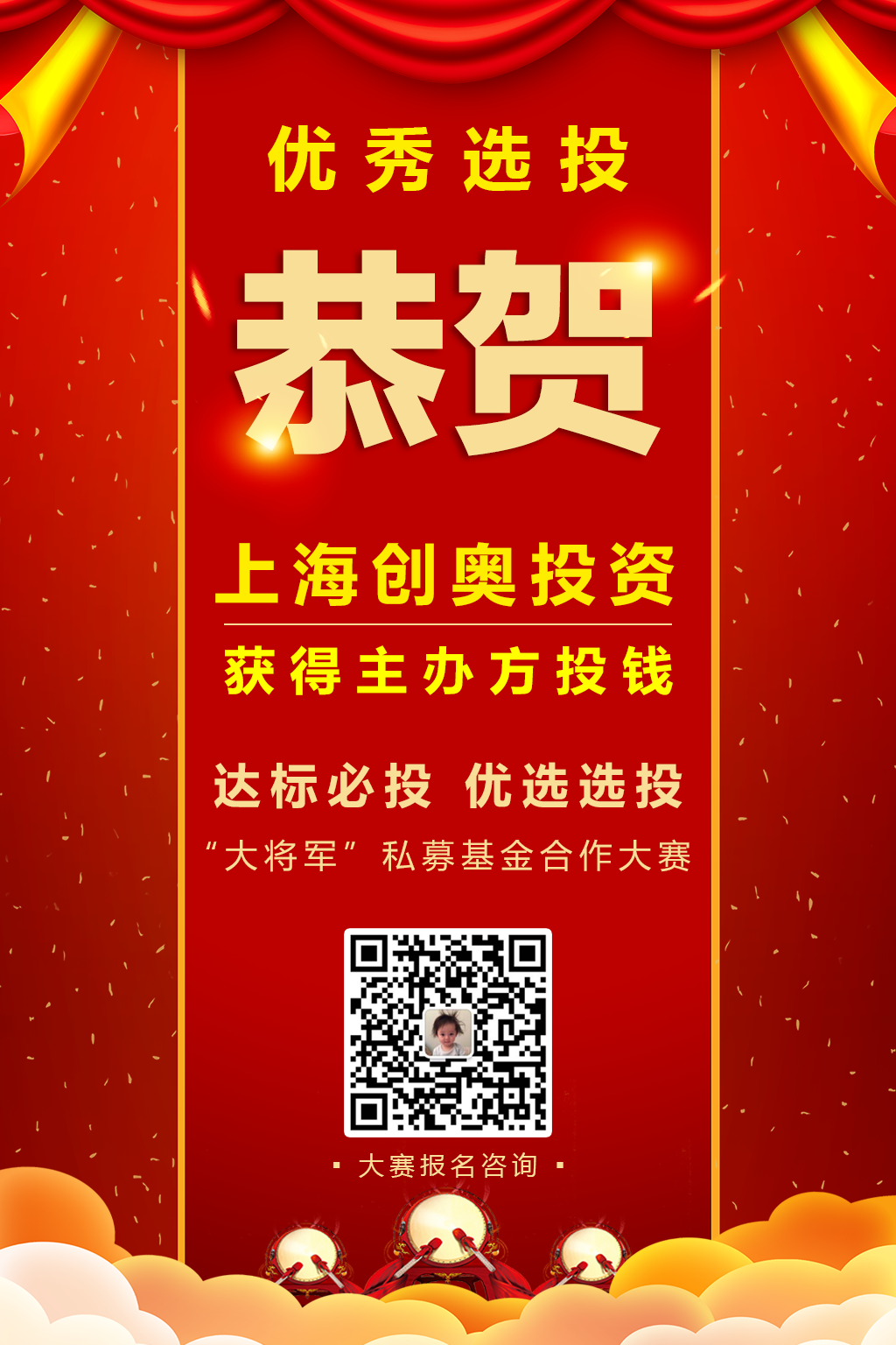 | 大将军私募合作大赛报名开启!本次大赛主办方将最多投出20亿管理型资金,单笔最多投3000万! 本次大赛旨在通过客观公正的大赛,找到优秀的私募管理人,投出管理型资金,实现合作共赢。“达标必投,优秀选投”是本次大赛亮点,只要达到大赛的必投条件,大赛主办方必定会投管理型资金给参赛产品,称之为“达标必投”;大赛过程中,主办方会根据参赛产品表现进行综合评估,持续选投优秀产品,称之为“优秀选投”。