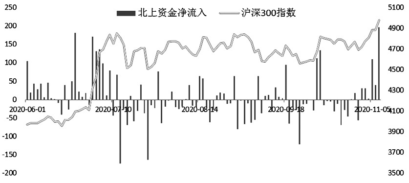 图为北上资金净流入走势 11月9日晚,全球第一药企美国辉瑞制药宣布,与德国生物科技公司BioNTech共同开发新冠mRNA疫苗能有效阻止90%的感染,新冠疫苗研制取得重大进展。后续,随着新冠疫苗取得审批并铺开,全球疫情有望得到遏制,全球经济也将加速复苏。受此影响,全球主要股指普遍上涨,美国三大股指集体高开,盘中均创历史新高。伴随着拜登确认当选,叠加新冠疫苗研制取得重大进展,强化全球疫情治理和经济复苏预期,直接带动市场风险偏好提升、海外风险资产大涨。 对于国内市场,疫苗进展超预期也将直接利好。一方面,随着未来疫苗推出,海外疫情得到控制,全球经济加速复苏,进一步强化外需修复,推动中国经济回暖。另一方面,此前外资在风险事件影响下表现谨慎,整个10月北上资金合计净买入不足1亿元,成为压制市场最主要的因素。随着海外风险事件相继落地,外资强势回流,11月9日净买入接近200亿元,创下单日净流入第二大纪录,市场风险偏好明显释放。短期市场主导因素是大选结束的风险释放和疫苗利好,风险快速释放后,短期国内市场利空因素较少,修复性机会仍然存在。 从经济基本面来看,制造业PMI连续8个月位于荣枯线以上,财新服务业PMI56.8大超预期,整体上企业家对经济前景保持乐观,三季报披露基本结束,多数公司净利润超预期环比改善,中国在全球抗疫和复工复产中继续处于领先地位,强劲的消费复苏有望带动经济平稳发展,对市场来讲是“强心剂”。中长期来说,在“十四五”规划的加持下,科技创新、新能源、大城市集群建设、医疗卫生等市场核心资产将会有持续良好表现,市场龙头效应依然存在,指数在龙头个股稳定表现下,呈现中枢稳步上移的趋势。 未来可能压制市场的因素在于流动性变化。上周,央行再次强调其对金融稳定问题的关注。金融稳定将是未来我国货币政策的核心考量因素,央行可能从金融稳定视角出发,特殊时期出台的政策将适时适度调整,边际收紧货币政策。但我们认为,货币政策的核心没有转变,依然在于“实现稳增长和防风险长期均衡”。当前全球疫情出现转机,经济有望复苏,及时调节政策力度、节奏和重点,留足政策空间,更有利于金融经济系统的稳定。所以,流动性收紧虽然可能压制短期市场的涨幅,但在国内经济转型期更有利市场平稳向上发展。