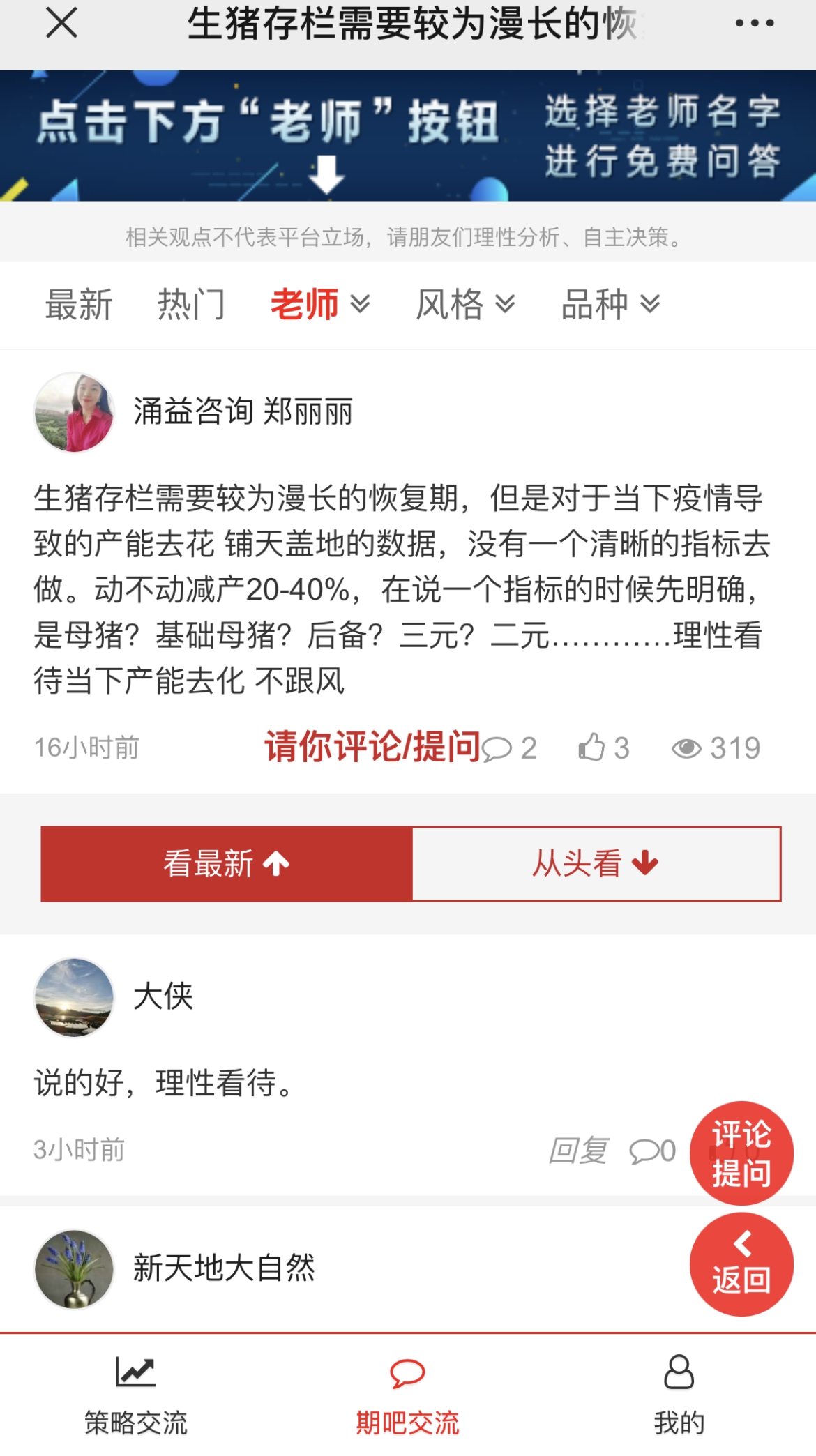 | 七禾网旗下手机端交流平台【期吧】现在已免费开放~ 在【期吧】中,你可以【免费】和各个产业大咖畅聊行情,让各位老师帮你解读行情,梳理产业逻辑。