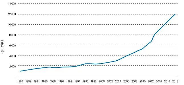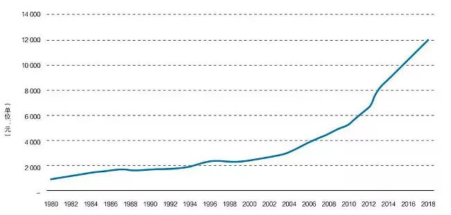 图3 欧洲和中国与美洲之间的距离 来源:EncyclopaediaBritannica, Inc. 2012. 如前所述,农业文明是由光合作用原理决定的,光合作用对能量转换的极限受制于土地的大小。土地的大小有自然的上限,因此农业文明的经济是短缺经济。而以现代科学技术为基础的文明能够释放出持续的、复利式的经济增长的动力,将农业时代的短缺经济转变为富足经济。这种区别是划时代的。 这种新制度是经济贤能制(Economic Meritocracy)的结果。在欧洲,人们忽然发现,无论你是谁,出身如何,你在经济层面上有了自由上升的通道,可以通过努力飞黄腾达。这种体系有助于释放个人和小集体(公司)的潜力,它吸引着人性的另一个方面,即个体性力量的释放。 这是过去几百年间的现代史上才发生的现象,欧洲(西方)分裂的小诸侯国及美洲大陆上特别是北美的小殖民国,正是形成这种新文明的政治、地理土壤,而在西方个体和小集体的强大是现代文明的产物。 这就是为什么西方看中国、中国看西方时,都常常不得其法。他们总是从自己的偏见和自身的成功经验出发。 例如,西方是因为个体和小集体(公司)的力量而成功的,他们对政府的干预就不免总有深入骨髓的怀疑。所以我今天演讲的第一部分就是要给大家做好铺垫,讲述一下中西方之间这些有着长期历史渊源的、深刻的、根本性的差异。 02 中国的现代化历程及近四十年的经济奇迹 1840年,中国和现代的西方以鸦片战争的形式相遇了,中国被迫开放通商口岸,同时也不得不面对残酷的现实——沉浸在农业文明时期的辉煌中时,已经完全错过了工业革命和科技文明。西方已经在这个过程中先行了几百年。此后的100多年里,中国在半殖民地状态下跌跌撞撞、举步维艰。 1949年,中国在共产党的领导下重新建立起统一的国家,在开始阶段走上了计划经济的道路,至少部分原因是计划经济的特点与中国人组织集体、释放集体潜力的本能恰好吻合。 对中国政府来说,这也是很自然的选择。当一个国家选择自己的命运和发展道路时,会受到根深蒂固的历史偏见的影响。 1978年,邓小平第一次访美后,在吉米·卡特(Jimmy Carter)总统当政时中美建立了外交关系。 从此,邓小平冲破中国传统历史偏见的藩篱,转而学习美国的道路,开始倡导市场经济,开放国门,如饥似渴地向美国及西方学习现代科学技术及市场经济道路。 自此,我们见证了中国近40年的经济超高速增长。这40年的复合增长率平均约为9.4%。按实际价值计算,中国40年来国内生产总值翻了37倍。这个世界第一人口大国实现了超长时期内经济持续超高速的增长,这绝对是一个奇迹,是史无前例的。 现在我们来解释一下这40年超级增长的原因。 首先是一些常规的解释。邓小平的改革开放政策让中国人真切地观察到美国的成功,也即西方成功的一个典范。 在中国实行开放政策的时候,美国相对来说还非常自信、胸怀宽广,愿意帮助中国。 另外,当时的世界大环境比较和平,美国的消费也为中国的经济增长助力,世界处于大规模全球化的进程中,中国加入了WTO等等。中国的经济增长离不开这些因素。 另外因为中国曾经太落后,要奋起直追,所以通过借鉴他国成功经验,谨慎规划未来的道路,总体来说规划得更好。中国人还有努力工作、重视教育、富有创业精神等文化传统。之前几十年的经历促使他们更加珍惜改革开放政策带来的机会去努力工作。 在人口方面,通过全球化、加入WTO,中国数亿年轻劳动力得以迅速融入全球经济。这些年轻人在很短的时间内就能创造出巨大的产出。而恰好这些产出还能被全世界吸收。所有这些因素都在一定程度上解释了中国几十年的高速增长,但它们还不是全部。