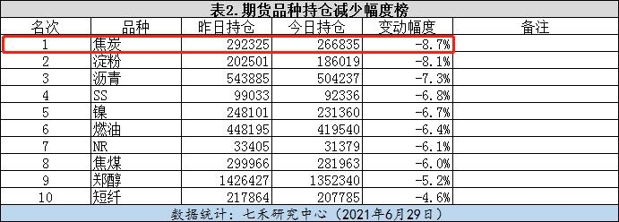 焦炭持仓减少8.7%