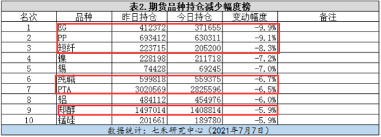乙二醇持仓减少9.9%,短纤持仓减少8.3%,PTA持仓减少6.5%