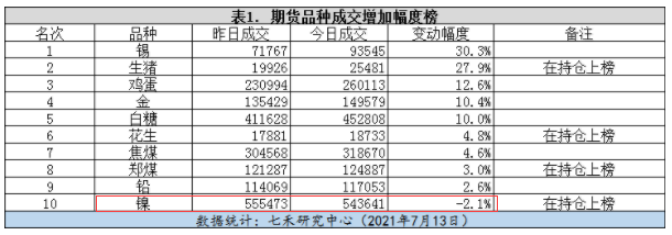 镍今日同时上榜成交榜和持仓榜