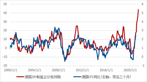 图12 中国经济主要指标 数据来源: 彭博、凯丰投资 在“政治是最大的宏观”的背景下,中国依然会以高质量发展而非速度为核心。8%左右的GDP、5%左右的失业率与2%不到的通胀都意味着现在的经济其实是个Goldilocks状态。 Goldilocks(金发姑娘经济)是美国用来描述1990年代后期克林顿执政的平衡状态。中国现在的情况与彼时的美国类似,增速不快不慢、通胀不高不低、就业不上不下、政策不紧不松。 如果说有值得担忧的地方,那就是PMI出口订单与非制造业就业指数的下滑。这意味着货币政策如果调整,那么其宽松的概率将大于收紧的概率,也支持平配。 如去年底预期,应该担忧通胀的仍是欧美。各种调查通胀预期的指标大幅攀升之外,2年期通胀保护债券的隐含通胀水平也从去年底的2%上升到了2.7%,而同期的2年期美债利率只从0.16%上升到0.26%。 我们认为本次美国通胀的持续时间将会相当长,更类似上世纪70年代而非本世纪10年代,反馈闭环是底层收入的增加与供给扩张的减缓。底层收入的扩张体现在本轮美国财政的“直升机撒钱”与政治左转试图解决贫富差距问题。而供给的扩展减缓在于中国吸取了2008年的教训,把“高质量发展”放在了“高速度增长”之前,在疫情期间并没有大幅扩张产能,而是专注托底就业与民生。 美国今年的工资增长非常迅速,其后隐含的是缺人指数与辞职率。过去两个月的就业数据显示,历史高处的缺人指数、低参与率和高辞职率都意味着工资的进一步上涨,对潜在的通胀形成有效的正反馈。