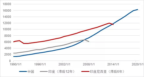 图4 美国贸易平衡 数据来源: 彭博、美国国会预算办公室、凯丰投资 货币方面,美元的吸引力相对欠缺,而中国实际利率水平自2013年以来一直维持在历史较高位置。在去年疫情之后,中国的实际利率水平相对于欧美更是一枝独秀。以两年期国债利率与CPI的差为例,中国是1.3%,美国是-4.75%,德国是-3.0%。 转换二 . 虚拟到商品中,油电经济转换在加速 虚拟到商品转换的这个主题主要基于两个重要因素。拜登政府的上台在两个方面都加强了这两个因素。更为重要的是,美国重回巴黎协议,重新关注全球气候与碳排放问题,大幅加速了油电经济转换。 第一个因素是美国经济内部资金驱动的“虚”,需要向制造业与基建的“实”转换。在今年六月份,美国两党小组破天荒地达成了约1万亿美元的方案并通过了众议院表决。虽然未来五年的投资净增量只有不到6000亿,但两党严重对立的国会能做到这一点,已经说明美国对基建有很强的共识。 第二个因素是新兴市场的增长,推动商品消费。当人均GDP发展到一定水平,消费者对固定资产与耐用消费品的需求会大幅提升,与之配套的宏观基础设施会大幅增加对商品的需求。 这一特征充分体现在中国进入WTO之后。2005年中国人均GDP达到5000美元左右的水平(稳定国际美元购买力平价计算),对冰箱空调洗衣机汽车住房的需求大幅上升,对公路铁路机场以及电力系统的需求也同时增加。