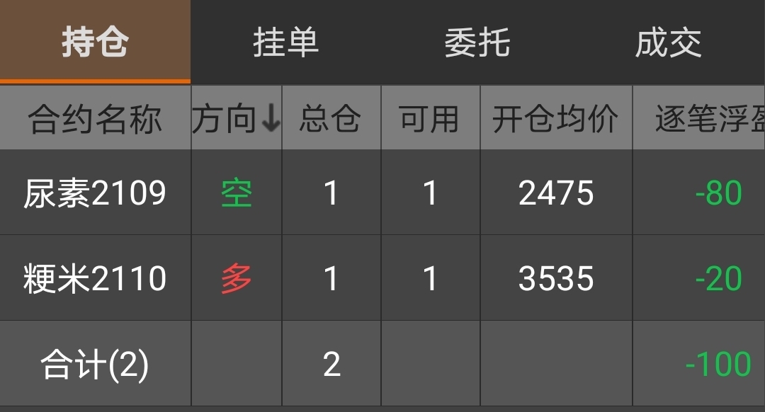 | 一、开仓总结 尿素:2021年8月12日,尿素指数合约或主力合约下午收盘前,在日线上出现了一波横盘整理后的向下突破,8月12日收盘前价格合格,所以在14:54开空1手尿素2109合约,开仓价为2475。 粳米:2021年8月9日,粳米指数合约或主力合约下午收盘前,在日线上出现了一波横盘整理后的向上突破,8月16日收盘前价格合格,所以在14:59开多1手粳米2110合约,开仓价为3535。 二、平仓计划 尿素:收盘价附近向上突破近期3根均线(5日、10日、20日均线),在收盘前或下一个交易日开盘后全部平仓。 粳米:收盘价附近向下突破近期3根均线(5日、10日、20日均线),在收盘前或下一个交易日开盘后全部平仓。 注:本交易总结由第三方提供,只作为投资理念和方法的交流,不作为七禾网的观点,也不作为投资参考和建议。 附: 1、交易者简介 十年股票/期货/外盘交易经验,每年都实现投资盈利。 擅长微观盘面分析和宏观市场分析,总结了数套有效的盈利模式,和众多高手有深入交流,收益良好。 2、持仓截图