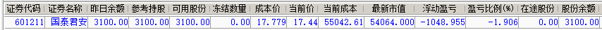 | 账户初始资金:49568.55元 参考市值:54064.00元 账户资产:55162.84元 截至今日账户A股盈亏:5594.29元 账户净值:1.112 资金股份
