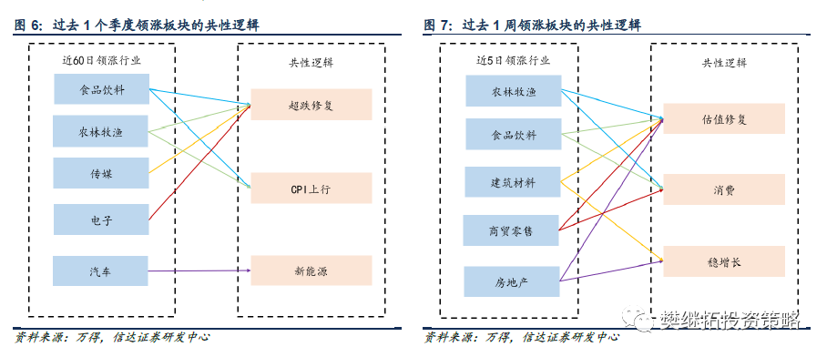(3)主要是因为投资者调风格带来的市场波动。鉴于交易拥挤度和经济预期都没有出现问题,最近两周的调整,可能主要源自于投资者调风格带来的市场波动。最近1个月,能够明显观察到,几乎大部分领涨的行业大多是今年整体表现偏弱的板块,比如食品饮料、养殖、传媒等。